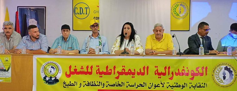 أكدت النقابة الوطنية لأعوان الحراسة الخاصة والنظافة والطبخ / الكونفدرالية الديمقراطية للشغل، أنه في الوقت الذي أطلقت فيه الحكومة مبادرات تتغنى بـ"الكرامة والحقوق الاجتماعية"، يتم على أرض الواقع إجبار شركة جهوية، كما هو الحال بجهة فاس – مكناس، حراس الأمن الخاص على توقيع عقود عمل لا تتجاوز 2500 درهم شهريًا.