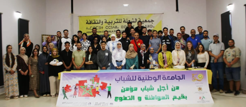 في إطار دينامياتها الشبابية المتجددة، احتضن المركز الوطني للتخييم بأكلو بإقليم تزنيت في الفترة الممتدة من 19 إلى 23 شتنبر 2025 فعاليات الجامعة الوطنية الثانية للشباب التي نظمتها جمعية الشعلة للتربية والثقافة تحت شعار: “من أجل شباب مؤمن بقيم المواطنة والتطوع”. وقد عرفت هذه المحطة الوطنية مشاركة مائة شاب وشابة من مختلف الفروع والجهات، لتجديد العهد مع قيم الحوار والانفتاح والإبداع، وللاحتفاء بخمسين سنة من إشعاع جمعية جعلت من التربية والثقافة والتطوع مدرسة لصناعة الأمل وفضاءً لتأهيل الطاقات الصاعدة.