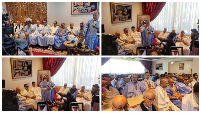 كما اعتبر شيوخ القبائل أن هذا الحدث يمثل نصرا عظيما وفرحة كبرى لكل أبناء الشعب المغربي من طنجة إلى الكويرة، داعين إلى اغتنام هذه المحطة التاريخية لإنهاء معاناة الصحراويين المحتجزين في مخيمات تندوف منذ أكثر من خمسين عاما.