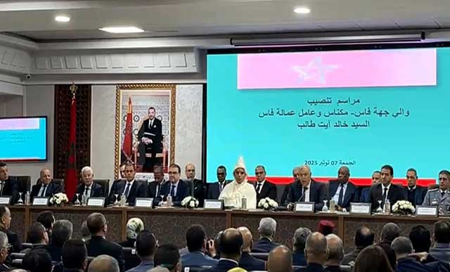 أشرف وزير الداخلية، عبد الوافي لفتيت، الجمعة 7 نونبر 2025 على مراسم تنصيب خالد آيت الطالب واليا جديدا على جهة فاس-مكناس وعاملا على عمالة فاس.