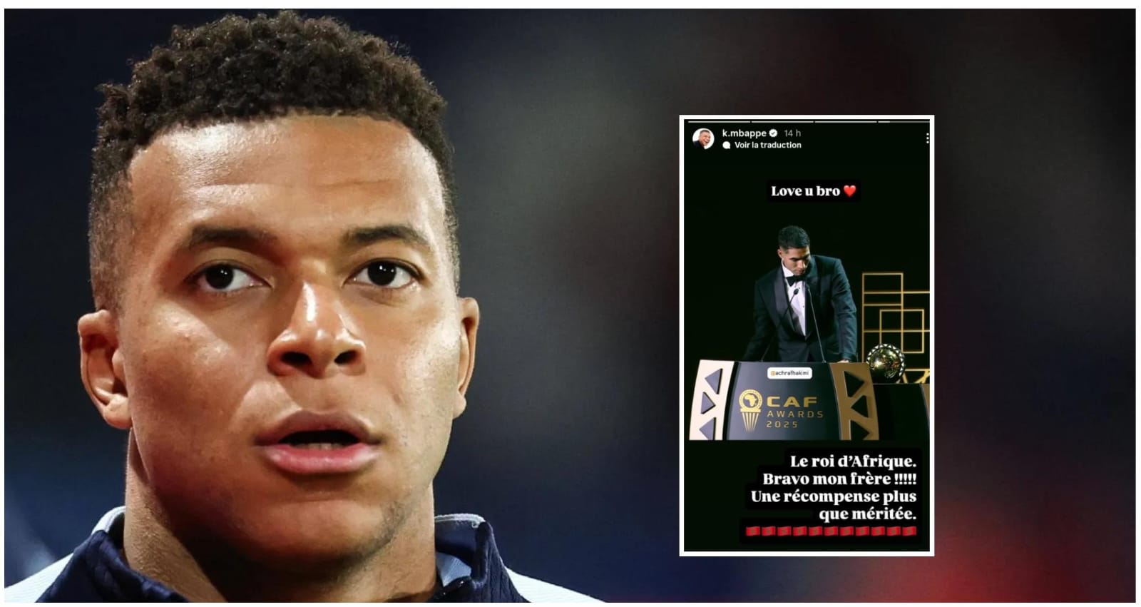 ونشر مبابي قصة قصيرة "ستوري" عبر حسابه في موقع التواصل الاجتماعي "إنستغرام"، هنأ فيها أشرف حكيمي بعد نيله جائزة أفضل لاعب في أفريقيا، ووصفه بملك القارة قائلا: "ملك إفريقيا. برافو أخي، مكافأة أكثر من مستحقة".