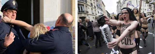 وحركة "فيمن" النسوية، التي ولدت في أوكرانيا، وعارضت بالصدور العارية النظام الأوكراني السابق الموالي لروسيا والكنيسة الأرذوكسية، تسربت إلى باقي أوروبا، حيث بدأت تهاجم الكنيسة الكاثوليكية التي تتهمها بالرجعية في مجال حقوق المرأة.