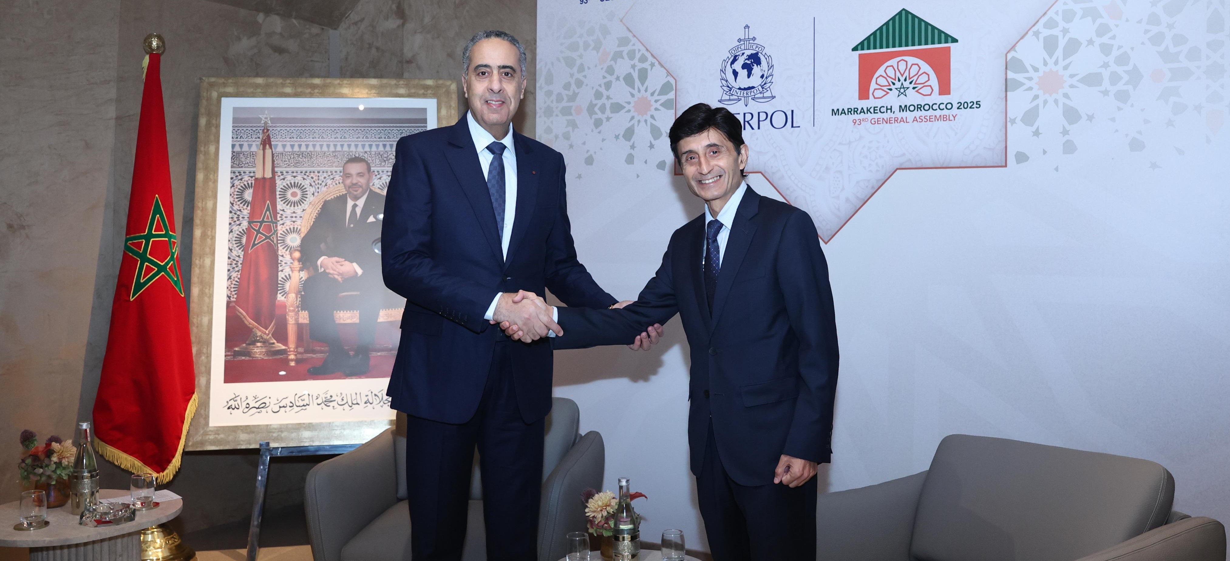 ويندرج هذا اللقاء في سياق الاجتماعات الثنائية التي يجريها المدير العام للأمن الوطني ولمراقبة التراب الوطني مع رؤساء وفود الدول والمنظمات الدولية والإقليمية المشاركة في الدورة الثالثة والتسعين للجمعية العامة لمنظمة الأنتربول، المنعقدة حاليا بمراكش.