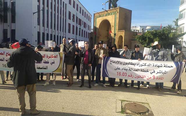 وأكد المحتجون أن إدماج الدكاترة لن يمسّ خصوصية المهنة، بل سيتيح تعزيز مواردها البشرية وتطوير أدائها بما يخدم المواطن.