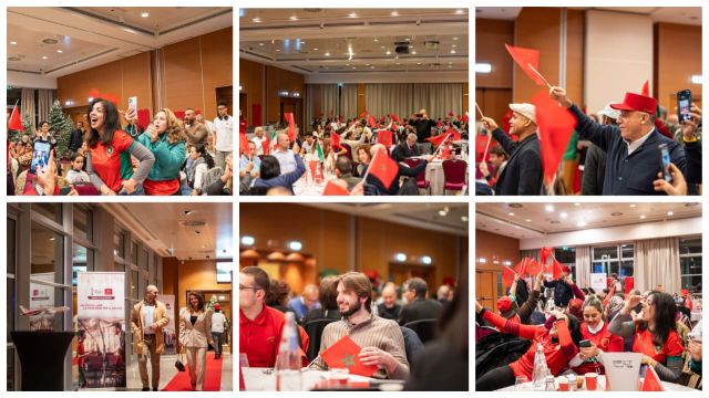كما رحب مدير شركة الخطوط الملكية المغربية بايطاليا بالحضور وهنا المغرب ملكا وشعبا بهذا التفوق والفوز وقال ان هذه المبادرة تندرج في اطار رؤية المدير العام للشركة لمواكبة الاحداث الوطنية الدولية التي تجسد تلاحم مغاربة العالم مع العرش للحفاظ على روابط التواصل مع الوطن الام وتوفير كافة اشكال الاهتمام ورعاية التظاهرات التي تخدم مغاربة العالم وتقربهم من وطنهم الاصلي.