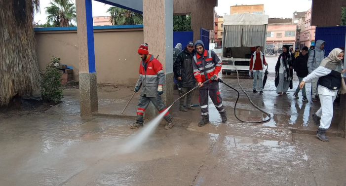 في سياق متصل قام عمال النظافة بمجهودات جبارة لإزالة الأوحال المتسربة والمحملة عبر حمولة مياه "وادي كشكاط" إلى داخل الثانوية الإعدادية المختار السوسي، من أجل ضمان سلس لمتابعة التحصيل الدراسي.