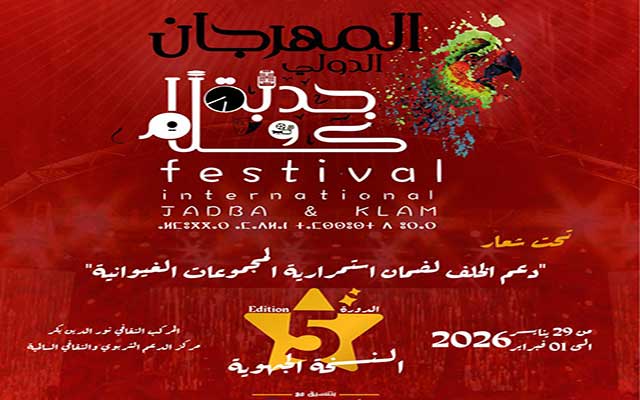 تنظم جمعية اللمة للفن والثقافة الدورة الخامسة من المهرجان الدولي جدبة وكلام- النسخة الجهوية، تحت شعار “دعم الخلف لضمان استمرارية المجموعات الغيوانية”، خلال الفترة الممتدة من 29 و30 و31 يناير و1 فبراير 2026 بمدينة الدار البيضاء.