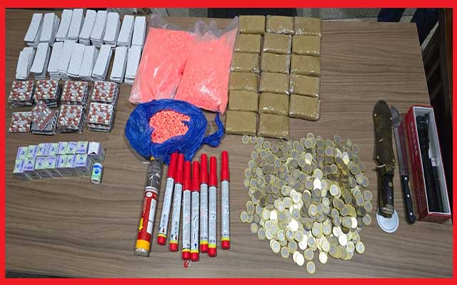 وقد جرى توقيف المشتبه فيهم بمدينة وجدة، وهم في حالة تلبس بحيازة وترويج المخدرات، حيث أسفرت عملية الضبط والتفتيش المنجزة عن العثور بحوزتهم على 9412 قرصا مخدرا من أنواع مختلفة، علاوة على كيلوغرام و690 غراما من مخدر الشيرا ومبلغ مالي يشتبه في كونه من متحصلات هذا النشاط الإجرامي.