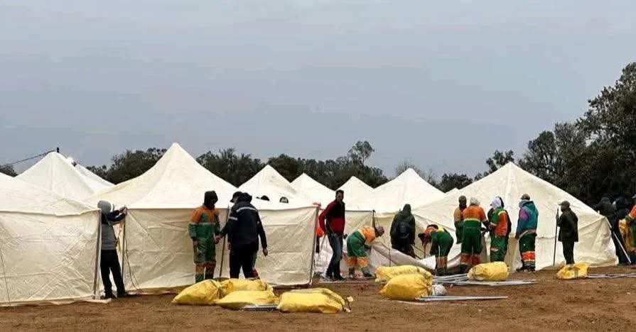 ومن المعلوم أن هذه الخيام مجهزة بالكامل، بالأفرشة والأغطية والإنارة مع المرافق الصحية الضرورية. فضلا عن تعزيز المخيم بمطبخ ميداني تابع للقوات المسلحة الملكية، لضمان استقبال المتضررين في شروط وظروف جيدة.