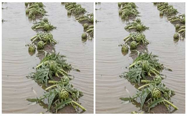 في ظل هذه الكارثة الطبيعية ومخلفاتها من الخسائر المادية، هناك حديث عن إتلاف عشرات الهكتارات من المنتوج الفلاحية من بينها مثلا منتوج "القوق" المعروف بـ "الخرشوف"، إلى جانب عديد من حقول الحبوب والقطاني، إلى جانب مساحات شاسعة من زراعة الشمندر وغيرها من المنتوجات الزراعية التي تعرف بها منطقة الغرب.