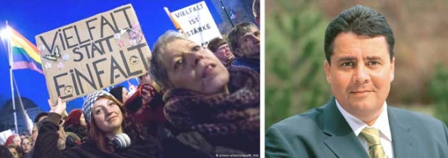 من جانبه أيضا، دعا رئيس الحزب الاشتراكي الديمقراطي في ألمانيا "زيغمار غابرييل" إلى تنظيم مسيرة حاشدة ضد "الإرهاب" في سياق مع ما حدث بفرنسا وتأييدا للتعايش السلمي بألمانيا، إلا أن الاتفاق على هذا الأمر مع الأحزاب الأخرى والتجمعات الدينية وأرباب العمل والنقابات والنوادي الاجتماعية سيتم خلال عدة أيام..