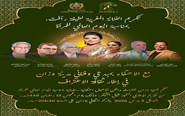 في إطار الاحتفاء برموز الإبداع المغربي، تنظم جمعية وزان للتراث والفن الأصيل أمسية رمضانية استثنائية لتكريم قامات فنية وثقافية بصمت المشهد الوطني، كلٌّ في مساره وتخصصه، وأسهمت بإخلاص في خدمة الفن والهوية المغربية.