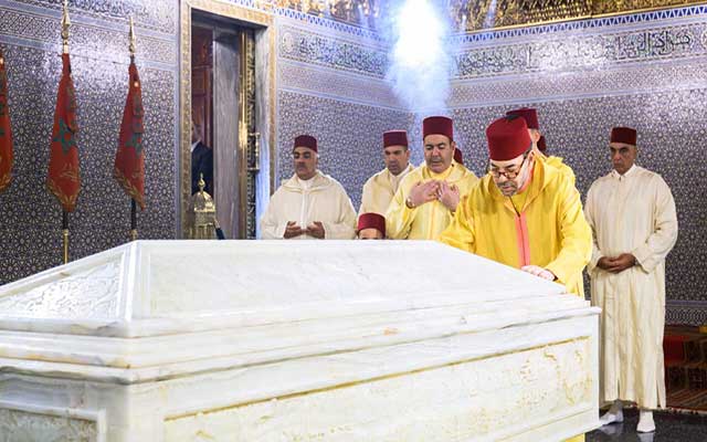 قام أمير المؤمنين الملك محمد السادس، مرفوقا بولي العهد الأمير مولاي الحسن، والأمير مولاي رشيد، والأمير مولاي أحمد، السبت 28 فبراير 2026، بزيارة ضريح محمد الخامس حيث ترحم على الراحل الملك محمد الخامس، وذلك بمناسبة حلول العاشر من رمضان، ذكرى وفاته.