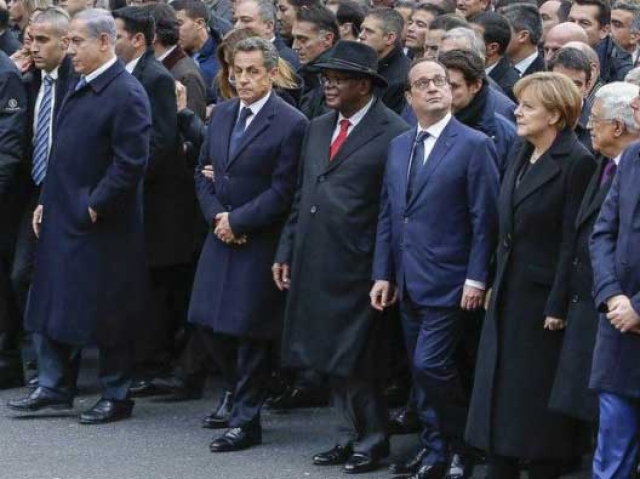 وتظاهر نحو مليون شخص ضد الإرهاب في باريس. وقيل إن قادة دول الاتحاد الأوروبي ساروا في مقدمة المسيرة. وفي الحقيقة، سلك القادة الأوروبيون المشاركون في التظاهرة، الأحد الماضي، مسلكاً منفصلاً برفقة رجال الأمن، حسب صحيفة "الأنباء الاقتصادية الألمانية" (دويتشيويرتشافتسناخريختن).