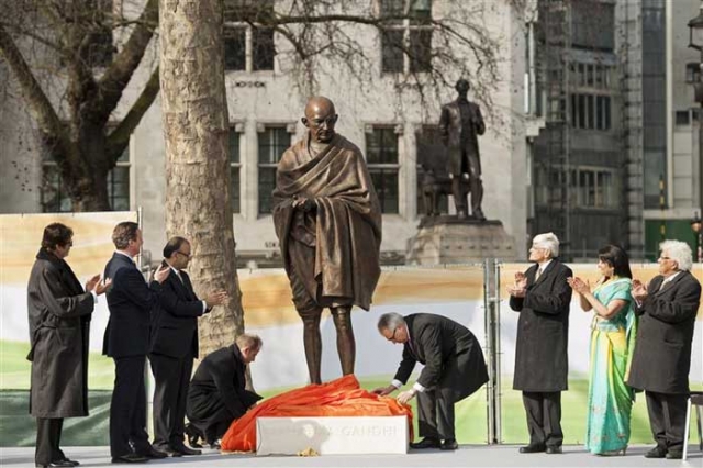 ورأى كاميرون أن وضع هذا التمثال "يكرم إحدى الشخصيات الأكثر أهمية في تاريخ العالم"، مشيراً إلى أن التمثال البرونزي الذي نحته فيليب جاكسون مستوحى من زيارة غاندي لمقر رئيس الوزراء البريطاني.