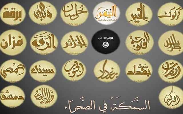 وفي صورة موحدة ضمن التقرير الموسع، استعرض “داعش” أسماء ولاياته مذيلا الصورة بعبارة “السمكة في الصحراء” وهي المرة الأولى التي يكشف فيها التنظيم عن هذا الشعار أو الاستراتيجية. ومنذ تأسيسه يتخذ التنظيم من عبارة “باقية وتتمدد” شعارا لرؤيته إلى “دولة الخلافة” التي أعلن عن إقامتها نهاية يونيو الماضي على المناطق التي سيطر عليها في سوريا والعراق قبل أن يعلن زعيمه أبو بكر البغدادي في تسجيل صوتي له في نوفمبر عن توسعها إلى اليمن وليبيا ومصر والجزائر.