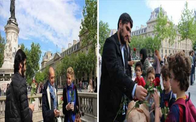 توزيع زهور في باريس ضمن حملة «أنا مسلم»