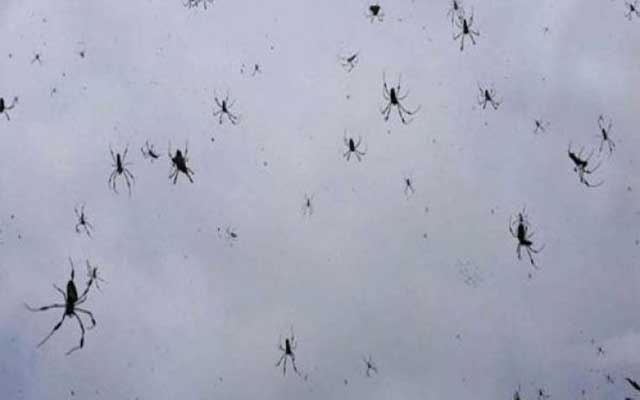 في فيلم رعب حقيقي وبالألوان الحية، أمطرت السماء ملايين العناكب من مختلف الفصائل على مدينة "جولبورم" الأسترالية، في ظاهرة نادرة تسببت في مفاجأة سكان هذه المدينة بوابل من العناكب المنهالة عليهم من كل حدب وصوب ما نشر الذعر بين أهالي المنطقة.