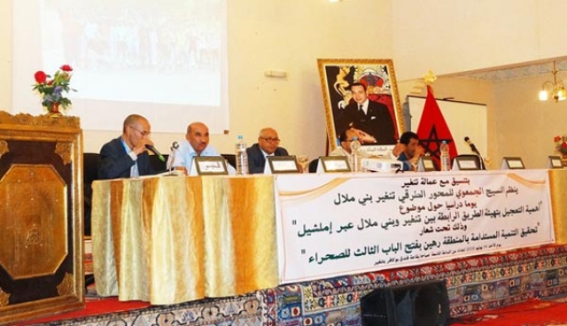 نظم "النسيج الجمعوي للمحور الطرقي تنغير بني ملال عبر إميلشيل"، يوم أمس الأحد 14 يونيو الجاري، يوما دراسيا حول أهمية التعجيل بتهيئة الطريق الرابطة بين تنغير وبني ملال، تحت شعار "تحقيق التنمية المستدامة رهين بفتح الباب الثالث للصحراء"، وذلك بمدينة تنغير.