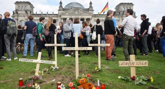 وكانت هذه الجمعية، التي تضم فنانين ألمانا، تنوي التوجه إلى أمام مقر المستشارة أنغيلا ميركل لدفن جثث مهاجرين قضوا على حدود أوروبا،لكن مدينة برلين حظرت هذه التظاهرة. ورغم ذلك أزال المتظاهرون الحواجز الأمنية التي وضعت حول مبنى البرلمان غير البعيد من مقر المستشارية. وفي الحديقة التي تقع قبالة المبنى التاريخي، حفر هؤلاء عشرات من الحفر الصغيرة وزرعوا فيها صلبانا تحمل شعارات مثل "الحدود تقتل" و"القلاع تسقط". وجلبوا أيضا ثلاثة نعوش فارغة... وبعدها، تفرق معظم المتظاهرين بناء على أوامر الشرطة، في حين اعتقل بعضهم لإضرارهم بالنظام العام.