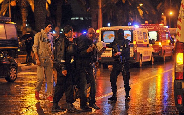 أما تونس، فقد عرفت انفجار حافلة كانت تقل قوات من الحرس الجمهورى التونسى أدى إلى مصرع 15 شخصا وإصابة العشرات، حيث وقع الانفجار في نهاية شارع محمد الخامس مع شارع الحبيب بو رقيبة، على بعد أمتار من وزارة السياحة ووزارة الداخلية وهرع الأمن إلى تطويق محيط الانفجار وسط العاصمة، وسارعت سيارات الإسعاف إلى نقل الضحايا إلى المستشفيات. وفى أول رد فعل منه أعلن الرئيس التونسى، الباجى قايد السبسى، حالة الطوارئ في البلاد لمدة 30 يوماً. فيما أكد بالقول على: "إننا الآن أمام حرب لها أبعاد دولية ليست فقط فى تونس، والحكومة الآن منكبة منذ مدة على ضبط استراتيجية جديدة لمقاومتة بناء على هذه المستجدات".