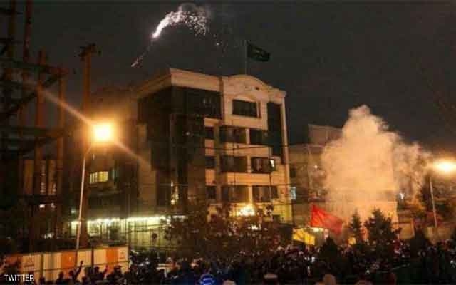 هاجم متظاهرون مساء السبت مبنى السفارة السعودية في طهران وألقوا باتجاهه قنابل حارقة تعبيرا عن غضبهم إثر إعدام الرياض رجل الدين الشيعي السعودي الشيخ نمر باقر النمر، حسب ذات المصادر التي أضافت بأن المتظاهرين رشقوا مبنى السفارة بالزجاجات الحارقة، وتمكنوا من اقتحام السور ودخول حرم المقر قبل أن تخرجهم منه الشرطة.