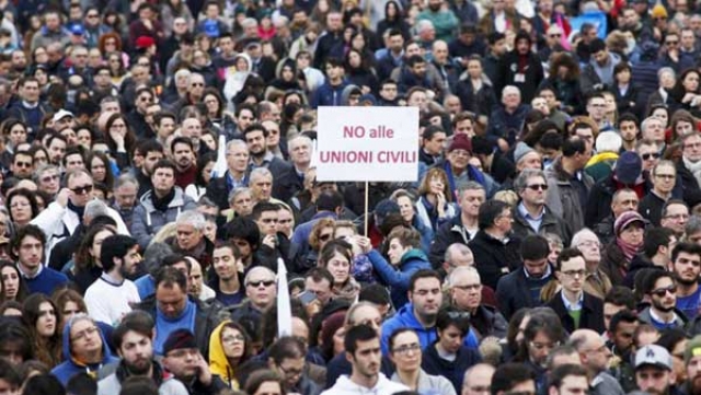 تظاهر الآلاف من الأشخاص في العاصمة الإيطالية روما احتجاجا على مشروع قانون يعترف بزواج المثليين من الرجال والنساء، ومنحهم حقوق التبني.وجاء المتظاهرون من جميع أنحاء البلاد لحضور الاحتفال بـ "يوم الأسرة".