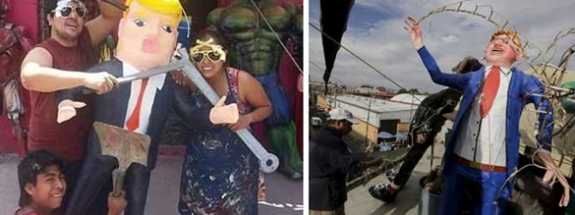 وفي حي شعبي في وسط مكسيكو تجمع حوالى مائتي شخص بحلول المساء لإحراق "يهوذا ترامب" في إشارة إلى أحد حواريي المسيح الذي خانه وقام بتسليمه مقابل حفنة من المال.