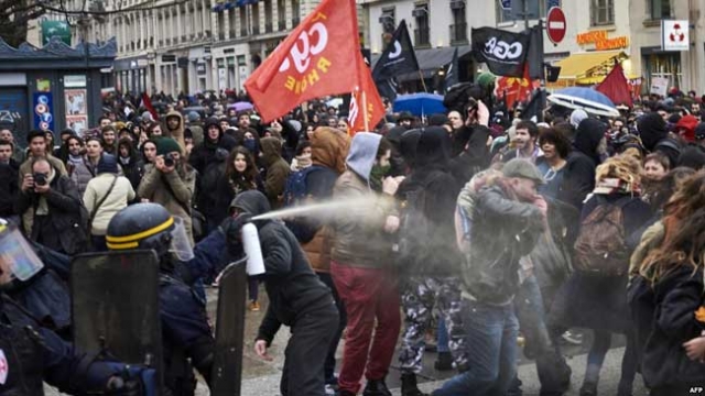 لكن كل من لم يأته خبر ما يدور في وطن فرانسوا هولاند، أن يعلم بأن المآت من المتظاهرين، وبالموازاة مع المقابلة التلفزيونية التي أجراها الأخير، تجمعوا في ساحة تروكاديرو لقصد التوجه إلى قصر الرئاسة قبل أن تقمعهم قوات الأمن. التعامل ذاته كان في وجه مهاجمي رئيس الوزراء مانويل فالس بضواحي باريس، ورئيس هيئة أرباب العمل بيار غاتاز في جنوب تولوز، مما رفع من ضغط المحتجين وأسفر عن تكسيرهم لزجاج واجهات المحلات والسيارات والحافلات وكل ما وجدوه في طريقهم، حتى أن صناديق القمامة لم تسلم من الحرق والعبث. والأكثر من ذلك أن آلاف الغاضبين قرروا تسمية حركتهم بـ "نمضي الليل ساهرين"، في إشارة إلى أن "السيل بلغ الزبى" ولم تعد معه إمكانية لغمضة عين إلى أن تتحقق مطالبهم، فكانت الحصيلة إصابة العشرات من رجال الشرطة ومثلهم من المتظاهرين بصرف النظر عن عدد المعتقلين.
