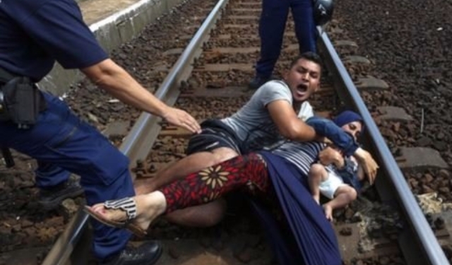 وتقدم لازلوبالوغ العامل في وكالة رويترز، لتصوير المشهد وتخليده، تحت عنوان اعتداء الشرطة الهنغارية المجاني على عائلة مهاجرة صغيرة، فقط لمحاولتها العبور إلى شمال أوروبا.