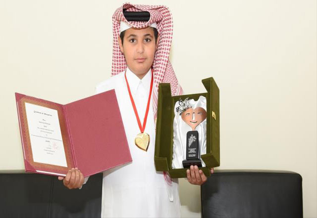 تحدى الطفل القطري عبد العزيز الحميدي - المصاب بنقص المناعة الوراثي ليحصد الميدالية الذهبية في المهرجان الدولي لرسومات الأطفال المرضى التي جرت بأوكرانيا .