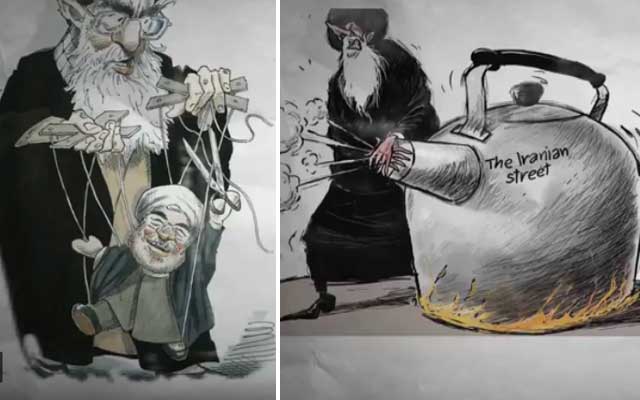 كما سخرت الرسوم من التدخلات الإرهابية والتخريبية لإيران في دول المنطقة كاليمن ولبنان وسوريا والعراق.