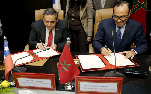 أفاد بلاغ مجلس النواب أن الحبيب المالكي رئيس مجلس النواب، قد أجرى يومه الثلاثاء 30 يناير 2018 ، مباحثات مع Fidel Espinoza رئيس مجلس النواب بالشيلي، والذي يقوم بزيارة عمل وصداقة للمغرب على رأس وفد هام يضم على الخصوص السيد Roberto Leon عضو مجلس النواب الشيلي.