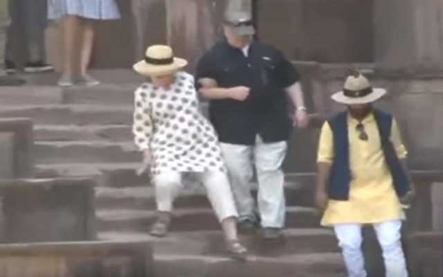 ووصلت هيلاري كلينتون، قبل يومين إلى مدينة "ماندو" الهندية، التي تحتوي على آثار تاريخية، تشمل مساجد من القرن الرابع عشر ومعابد، إضافة إلى القصر الذي انزلقت على سلمه الطويل مرتين.