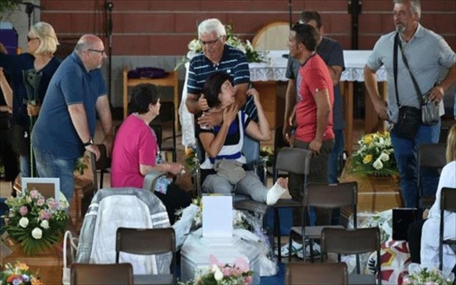 تعانق الأقارب باكين في أسى ومد آخرون أيديهم للمس النعوش الخشبية في جنازة رسمية، أمس السبت، لتشييع جثامين بعض من نحو 291 شخصا قتلوا في الزلزال الذي ضرب إيطاليا قبل أيام.