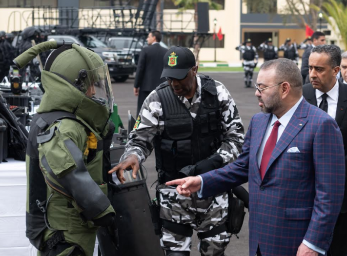 كما اطلع الملك، على وحدات من مجموعة التدخل السريع التابعة للمديرية العامة لمراقبة التراب الوطني، واستعرض الآليات والمركبات والمعدات اللوجيستيكية التي تستخدمها في عمليات التدخل والاقتحام لمواجهة مخاطر التهديد الإرهابي ومختلف صور الجريمة المنظمة، بما فيها تلك العابرة للحدود الوطنية.