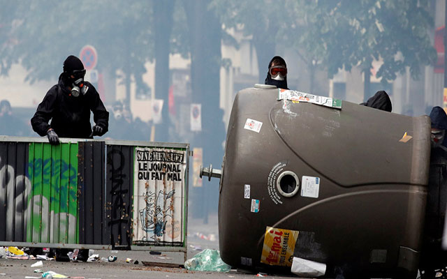 اندلعت مواجهات عنيفة بين الشرطة الفرنسية وعدد من المتظاهرين أثناء تظاهرة في باريس بمناسبة عيد العمال، اليوم الثلاثاء 1 ماي 2018.