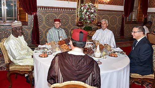 وحضر هذه المأدبة، مستشار الملك، فؤاد عالي الهمة وعدد من أعضاء الحكومة، بالإضافة إلى المستشار الاستراتيجي الرئيسي لرئيس مفوضية الاتحاد الافريقي، وكذا أعضاء الوفد المرافق لموسى فاكي محمد الذي يقوم بزيارة للمملكة، وشخصيات أخرى.
