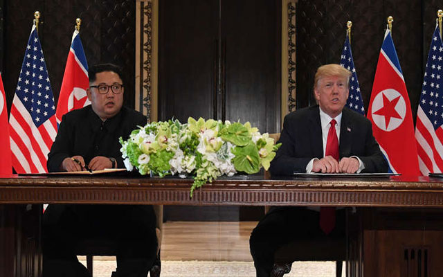 وتم اللقاء التاريخي بين كيم جونغ أون ودونالد ترامب في فندق كابيلا في جزيرة سنتوسا. ونتيجة للمفاوضات وقع الطرفان على وثيقة ختامية.