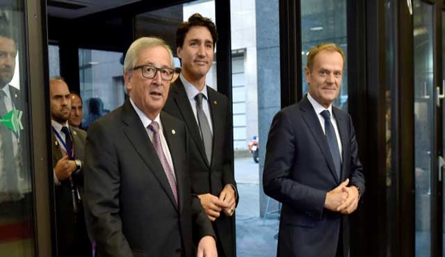 ووقع رئيس الوزراء الكندي، جاستن ترودو، الاتفاقية مع رئيس المجلس الأوروبي، دونالد توسك بحضور رئيس المفوضة الأوروبية جان كلون يونكر، مما يمهد الطريق جزئيا أمام دخول المعاهدة حيز التنفيذ في أوائل عام 2017 بعد إلغاء معظم الرسوم على الواردات.