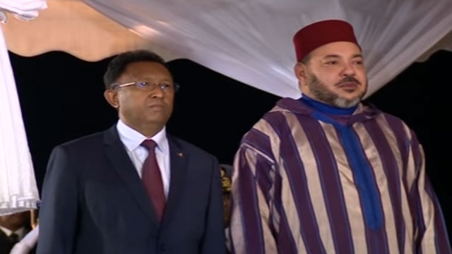 أجرى الملك محمد السادس، اليوم الإثنين بالقصر الرئاسي بأنتاناناريفو، مباحثات على انفراد مع رئيس جمهورية مدغشقر هيري راجاوناريمامبيانينا.