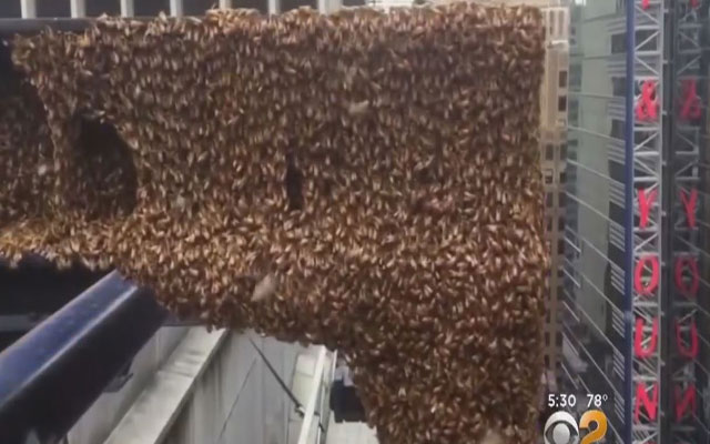 اضطرت شرطة مدينة نيويورك الأمريكية إلى إغلاق جزء من شارع 43 قرب الجادة السابعة وساحة تايمز سكوير الشهيرة خلال فترة الظهيرة يوم الثلاثاء بعد أن تجمع سرب كبير من النحل فوق مظلة زرقاء تغطي عربية لبيع شطائر الهوت دوج في منطقة بمانهاتن تعج بالفعل بأسرابها الخاصة من السياح والمارة والزحام المروري.
