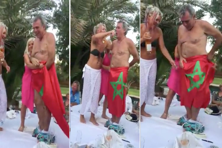 العلم الذي كان يرفع في ساحات الحروب، وتوشح به توابيت الجنود المغاربة الذين يسقطون في معارك الفداء، لا يمكن أن يصل إلى هذا المستوى الدنيء، ليلتحف به "شاذ" فرنسي في جلسة من "العرق"، لذلك نطالب بسيادة القانون بما يتناسب مع حجم هذه الجريمة التي ارتكبت في مدينة تاريخية كانت عاصمة لإمبراطورية حكمت العالم في زمن ما!!!