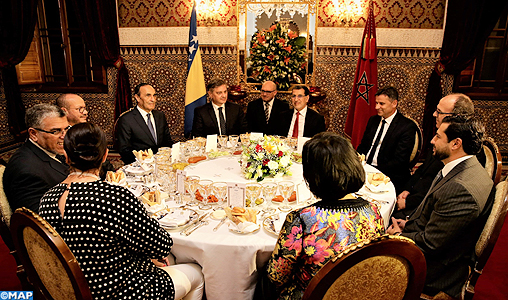 أقام الملك محمد السادس، مساء الاثنين 17 شتنبر 2018، بالرباط، مأدبة عشاء على شرف رئيس مجلس الوزراء بجمهورية البوسنة والهرسك دينيس زفيزديتش، الذي يقوم بزيارة رسمية للمغرب، ترأسها رئيس الحكومة سعد الدين العثماني.