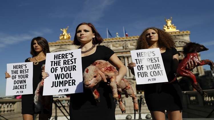 تجمع بضع مئات من نشطاء حقوق الحيوان في ساحة الجمهورية بالعاصمة الفرنسية باريس، احتجاجا على استغلال فراء الحيوانات وجلودها في صناعة الأزياء.