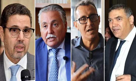 من اليمين: لفتيت وزير الداخلية، القيادي الدروش، بنعبد الله أمين حزب الكتاب، عبد النبوي رئيس النيابة العامة
