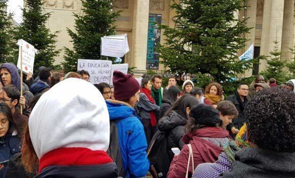 على هامش الاحتجاجات الفرنسية المتواصلة ضد ارتفاع أسعار الوقود بشوارع باريس الفسيحة، يبدو أن فيروسها قد وصل إلى رحاب الجامعات ضد الارتفاع الصاروخي في رسوم التسجيل بالنسبة للطلبة الأجانب، بعد ما قام أكثر من 200 طالب وطالبة (فرنسيون وأجانب)، أول أمس السبت والأحد 1 و2 دجنبر 2018، بوقفة احتجاجية بساحة بانثيون الباريسية، على بعد أمتار قليلة من جامعة السوربون المرموقة، حاملين شعار "نفس الدراسات... نفس الحقوق"، حيث طوقت الشرطة الوقفة التي دعت إليها النقابات الجامعية، ضدا على قرار رئيس الوزراء، إدوارد فيليب، الزيادة في الرسوم الحكومية لتسجيل الطلاب الأجانب، خوفا من توسعها، بعدما أطلقت التنظيمات النقابية الطلابية على الأنترنيت عريضة جمعت 150000 توقيعا.