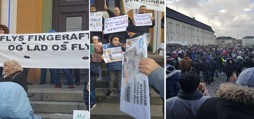 تجمع الآلاف من اللاجئين السوريين مدعومين من طرف المئات من الدانماركيين الغاضبين -في العديد من المدن الكبرى بالبلاد- على سياسات الحزب اليميني، وبعض الأحزاب الداعمة له في الائتلاف الحكومي الحالي الذي يقوده رئيس الحكومة لارس لوكي غاسموسن، في إصدار قوانين وقرارات تعد بالمئات ضد اللاجئين.