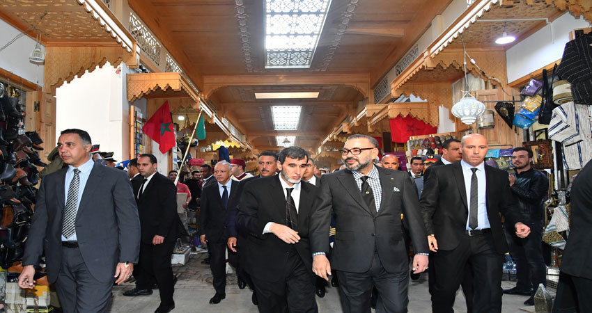 كما قام الملك بزيارة ورشات تأهيل ساحة الملح وزنقة الصباغين، التي تعرف أشغالها نسبة إنجاز جد متقدمة (75 في المائة).