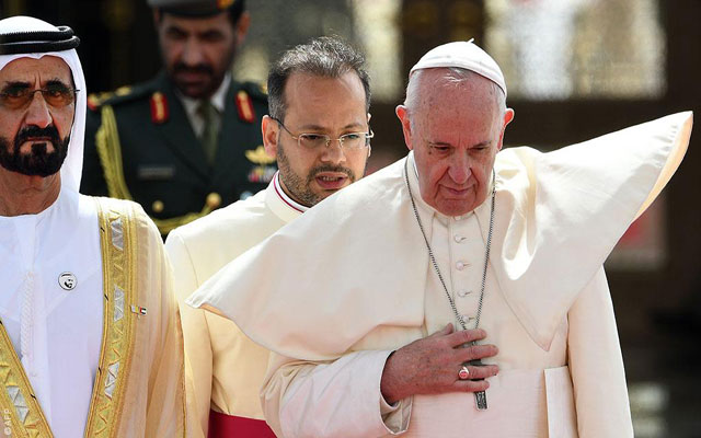 وفي رسالة عميقة للعالم الإسلامي، استُقبل البابا فرانسيس لدى وصوله إلى الإمارات من قبل شيخ الأزهر، أقدم وأعرق مؤسسة للتعليم الإسلامي في العالم العربي بأكمله.